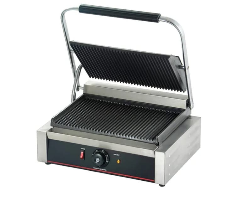+ Free ShippingGrill delicious sandwiches, burgers, paninis, and more with the Sandwich Griller. Built with a durable stainless steel body and ribbed heating plates, it ensures fast, even heating for crispy and perfectly toasted results. Equipped with adjustable temperature control and an easy-grip handle, it offers convenient and safe operation. Ideal for cafés, restaurants, snack counters, food stalls, and commercial kitchens looking for quick and efficient grilling performance.